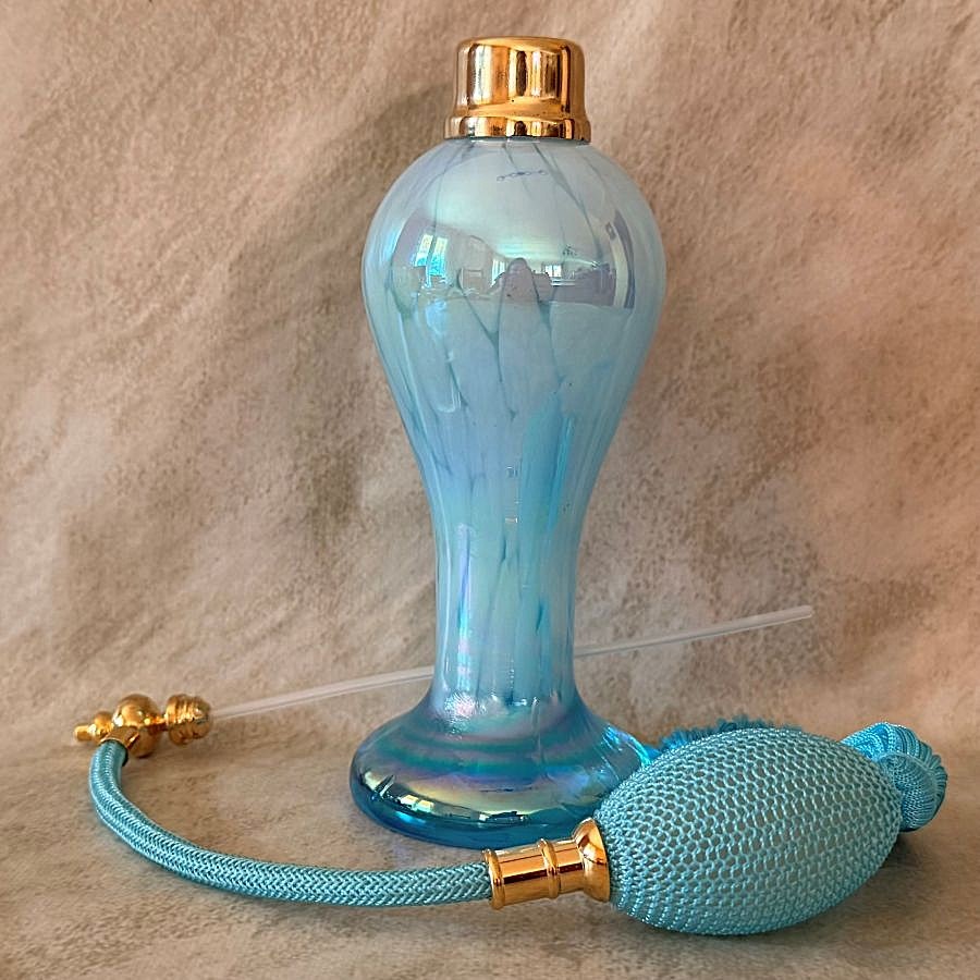 1 Vaporisateur de parfum de luxe en verre artisanal travaillé à la main nacre bleu vide et rechargeable