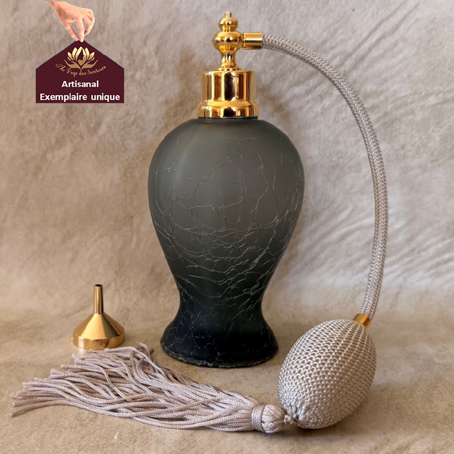 Vaporisateur de parfum artisanal verre galbé craquelé gris fumé